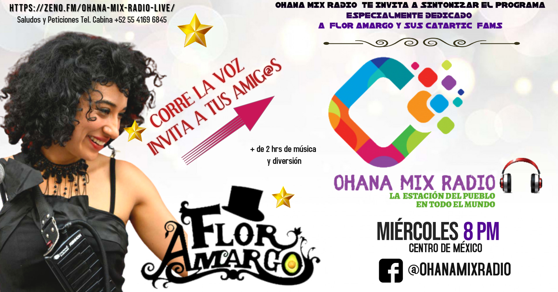 Flor Amargo es una cantante urbana, compositora, arreglista, pianista y multiinstrumentista mexicana con muchos seguidores con 2 hrs. de transmisión con la mayor audiencia en Ohana Mix Radio.